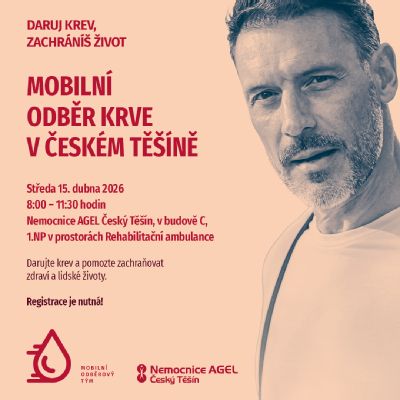 Nemocnice AGEL Český Těšín otevře ve středu 15. dubna 2026 mobilní odběrové místo v prostorách své rehabilitační ambulance. Darovat krev tak bude možné přímo ve městě bez nutnosti cesty do vzdálenějšího střediska.